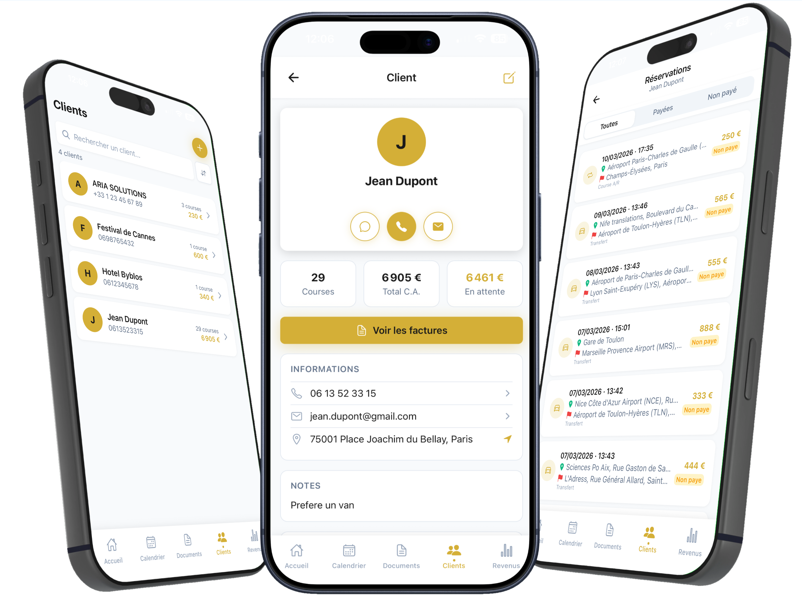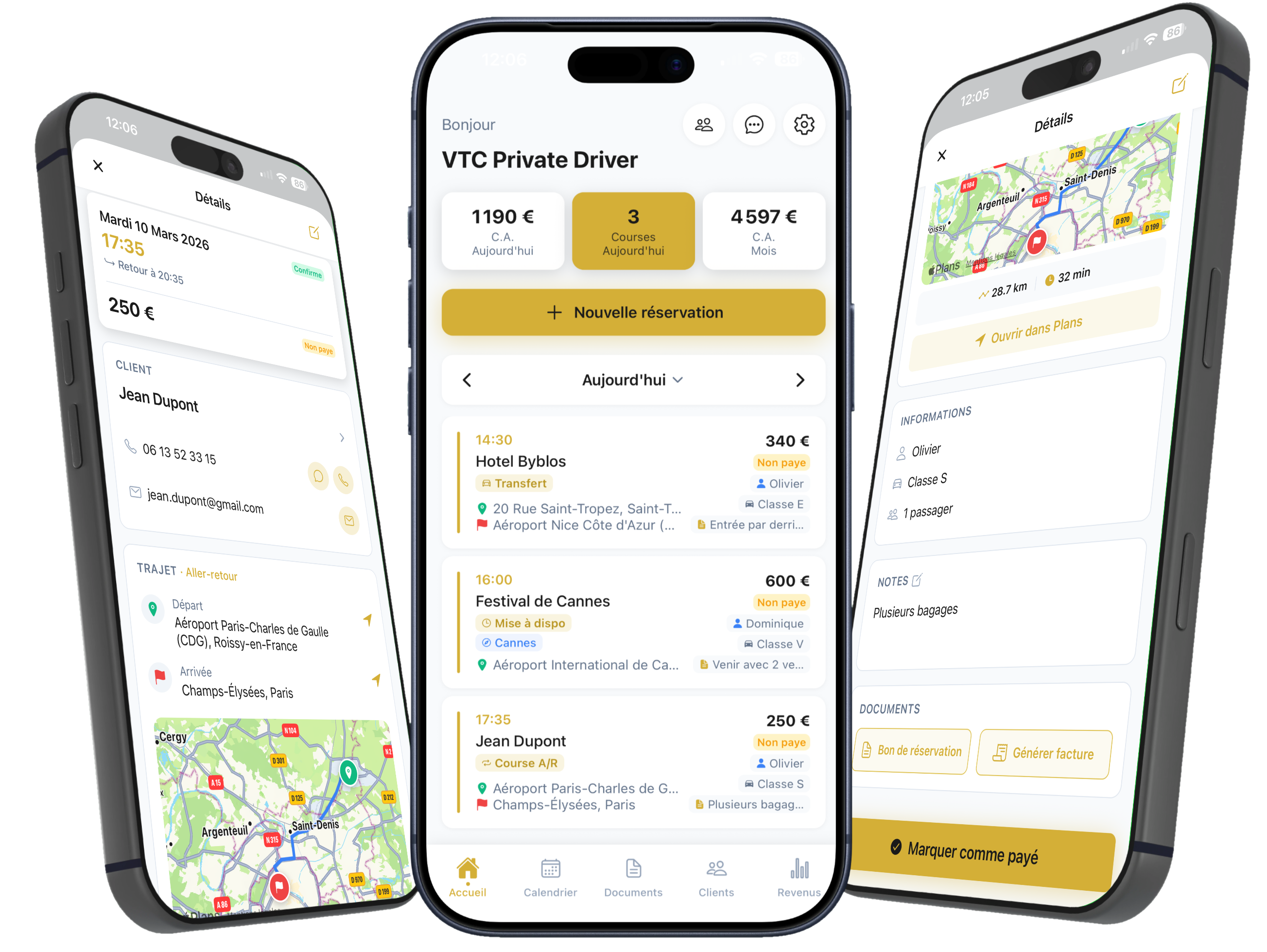 Bons de réservation générés automatiquement en 1 clic à chaque course. Fini la paperasse manuelle.